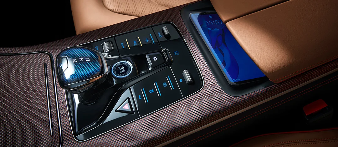 HAN EV fully immerses you in unmatched luxury. Each interior component exhibits masterful design featuring Nappa leather, European wood, and space-grade aluminum switches.