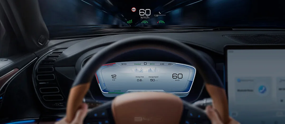 The Heads-up display projector on the windshield helps you stay focused on the road
